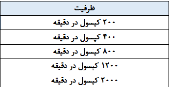 ظرفیت تولید بیش از 3000 کپسول در ساعت بسته به شکل کپسول |